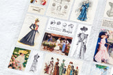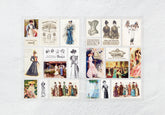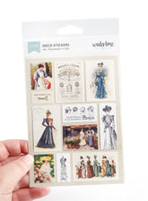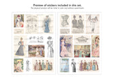 Step back in time with this charming set of handmade stickers featuring Edwardian and Victorian ladies and fashion objects. Each pack includes the 2 different kiss-cut A6 sheets (4.1" x 5.8") shown in the photos.