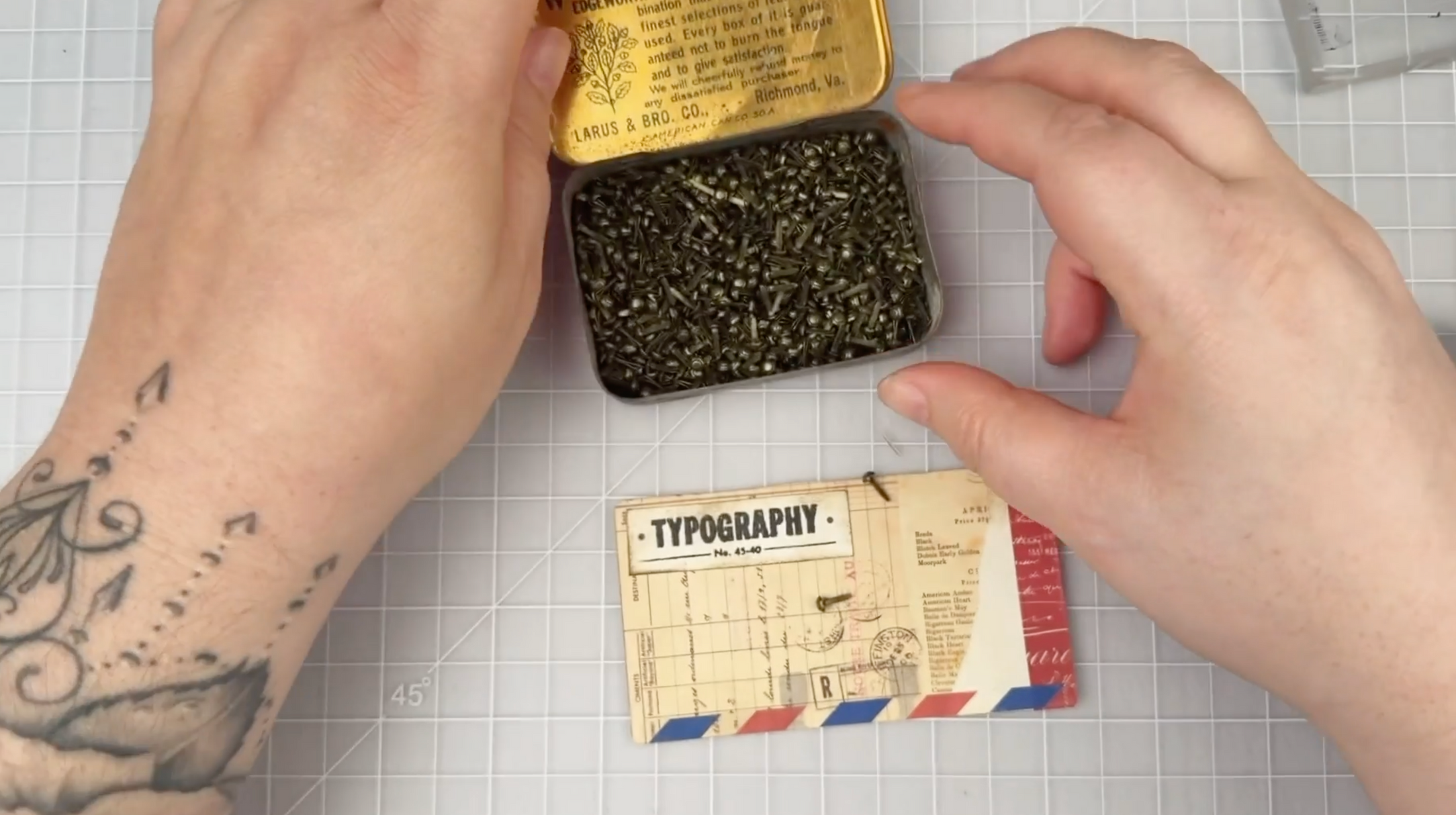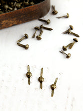 Beautiful vintage-style bronze mini brads with a slightly distressed finish. And when we say mini, we truly mean MINI—these are only 3.5mm (1/8") in diameter, about the size of a grain of rice!
