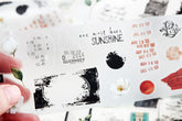 Pre-cut PET tape with great variety of small stickers, ideal for art journaling and planners. No cutting needed—just peel and stick to decorate pages, create focal points, or add subtle accents. We included both opaque and translucent elements in this unique collection of over 80 stickers, giving each piece a distinct appearance against various background colors. Please see the photos for examples of the tape used on white and darker backgrounds.