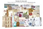 Each pack is completely unique and includes a great variety of themes and materials. We select and pack mostly medium and larger sized pieces (up to 5.1" x 7.1") for this pack. Please scroll through the product photos to see examples.