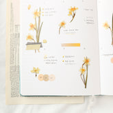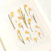 Narcissus pressed flower stickers from Appree, a Korean company inspired by nature. Their pressed flower and plant stickers are simply stunning! They're made to look like real pressed flowers with realistic shadows and high resolution prints—it's quite difficult to tell the difference. You can cut and layer them for an even more realistic look.