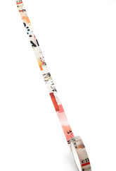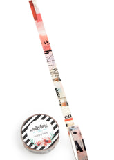 Slim washi tape with colorful collage details. The warm red and orange tones, along with the black, distressed typographic elements, create a lovely contrast on this tape. Easy to tear and reposition and won't leave any residue behind. Use for crafts, decor, packaging, scrapbooking, journaling and so much more!