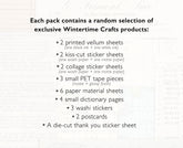 We're offering these delightful little sample packs with pages from our exclusive paper products! You'll receive a total of 25 pieces of paper and sticker items packed in a bag. A great option if you'd like to test materials, sizes, and quality of these products (see which are included below), or if you'd simply like to treat yourself or a loved one to a lovely surprise—this is a great choice!