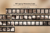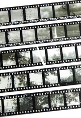 PET tape with square negative film strips featuring various abstract nature elements, such as clouds and trees. This tape has a calm, mysterious, and almost eerie feel to it. Created using real vintage photographs from the 1800s. Available in 2 versions: (A) warm sepia tone and (B) very subtle green-grey tint. Matte finish only.