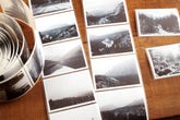 Each photograph has been carefully restored while maintaining its vintage feel. The images show mountain landscapes and serene roads from their journey. The colors range from black and white to very subtle warm tones—mostly in the corners and edges, just like the natural aging in the originals.