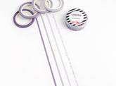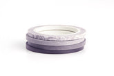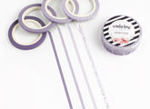 Set of 4 ultra-slim washi tapes in dusty purple tones: darker purple, medium purple, soft light purple, and a simple floral design. Each tape is 3mm wide.