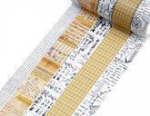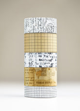 This set comes nicely packed in an elegant white box and includes 5 tapes with the following widths: 1*15mm, 2*20mm, 2*25mm. Each roll is 10 meters long. The five designs are: Distressed Grid, Vintage Papers, Vintage Ledger, Brown Grid and Vintage Collage. A great gift for a crafty friend!